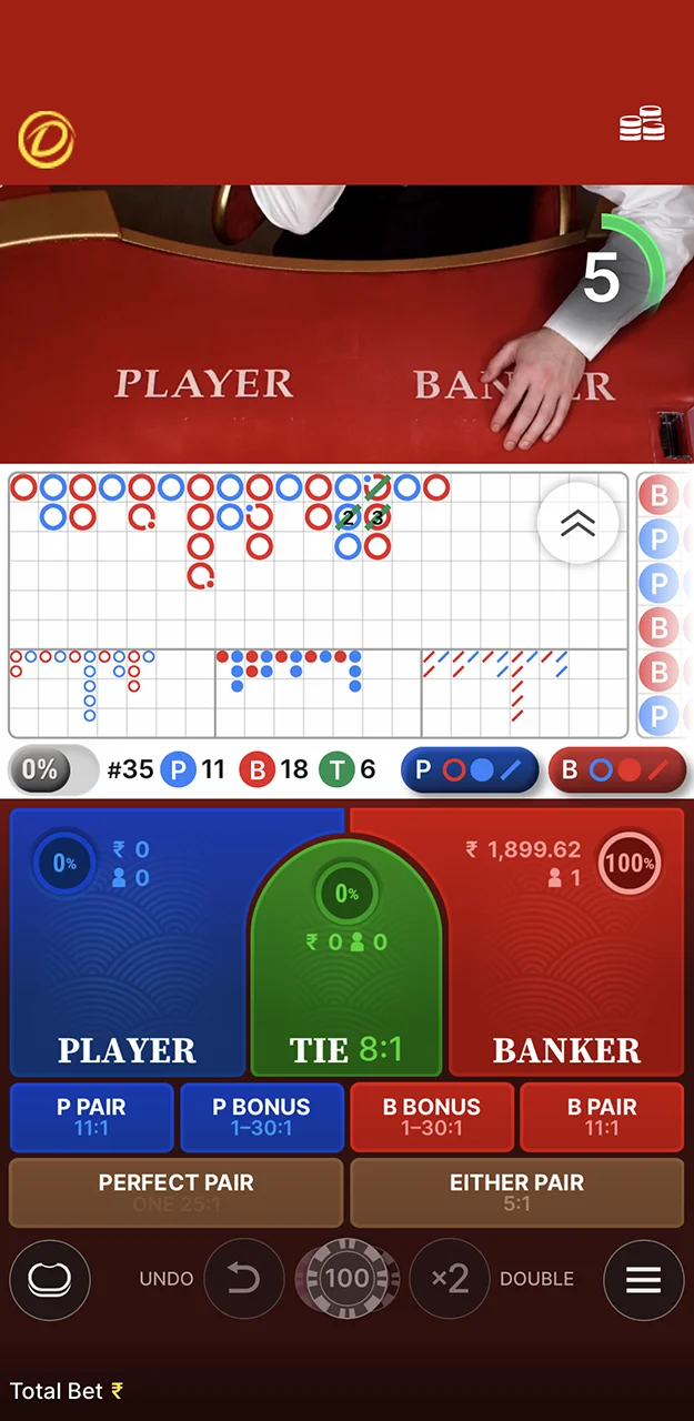 Most tables start at INR 10 per bet, though some VIP tables require higher minimums. You can filter games by betting limits to find tables matching your budget.